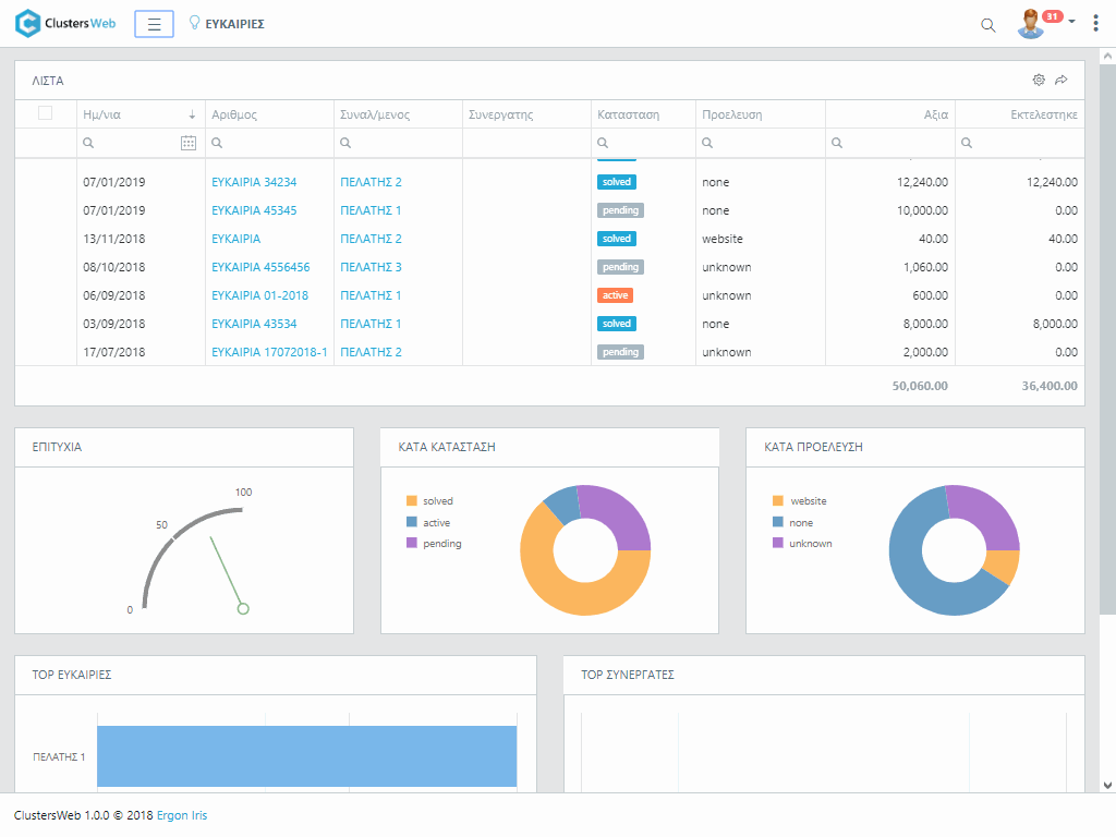 Ολοκληρωμένο CRM για αποτελεσματική διαχείριση πελατειακών σχέσεων. Διαβάστε περισσότερα...